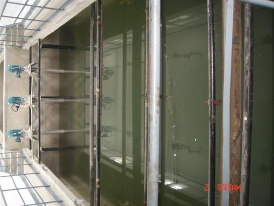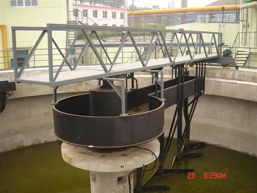 4、工程工艺:污水经各车间地沟自流通过格栅,进入格栅调节池后泵提通过气浮池、沉砂除油后自流进入水解酸化—接触氧化—斜管沉淀—气浮后达标排放。系统产生的剩余污泥通过地沟自流入污泥贮池—定期抽吸外运